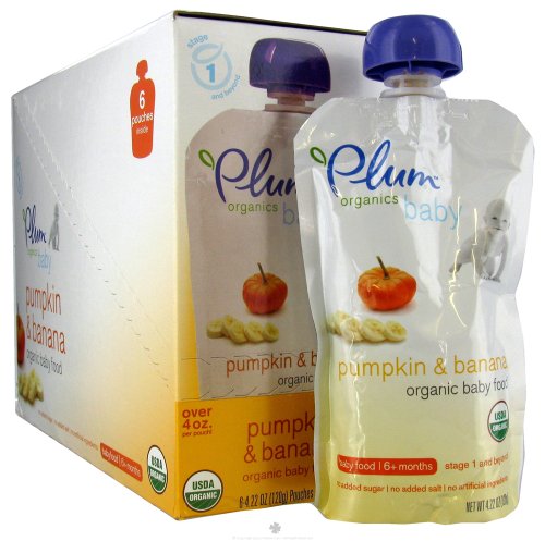- Plum Organics Organic Baby Food Pumpkin & Banana 6+ months uses only organic fruits and vegetables to ensure the best flavor, freshness and nutrients in their unique recipes. Introduce your baby to the experience of real food with delightful tastes that train their palate for a lifetime of healthy eating.