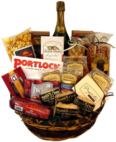 - This gift basket is wrapped in cellophane and tied with an elegant bow. No Gift Wrap is Necessary!